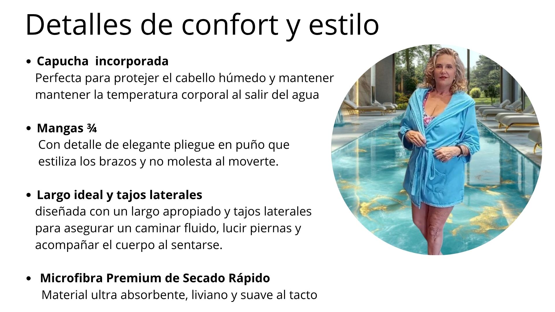 Nuestra bata de micofibra redefine la comodidad post-baño, integrando elegancia, practicidad y comodidad, condetalles técnicos que la hacen única en el mercado.